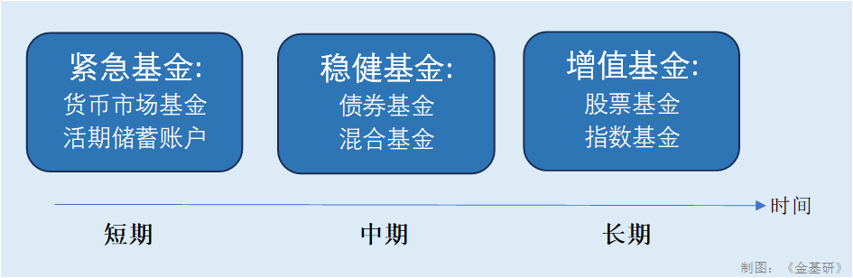 短期基金组合,为“紧急基金”。这部分资金主要投资于存入货币市场基金或活期储蓄账户,主要保持高度流动性,以便在突发事件中随时调用。