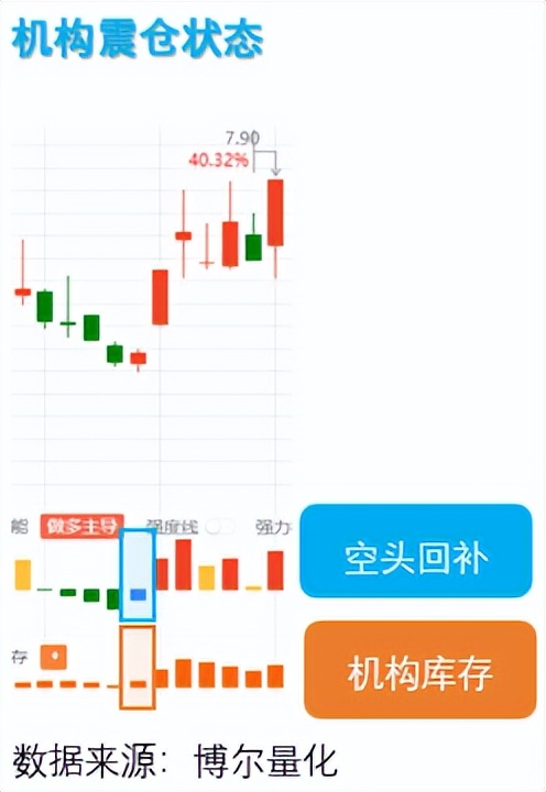 这是系统在量化「机构交易特征」后,对市场交易的整体展示,红黄蓝绿柱体代表不同交易行为,橙色柱体则是机构活跃度。当空头回补(蓝色)遇上机构库存(橙色),就是典型的震仓信号。