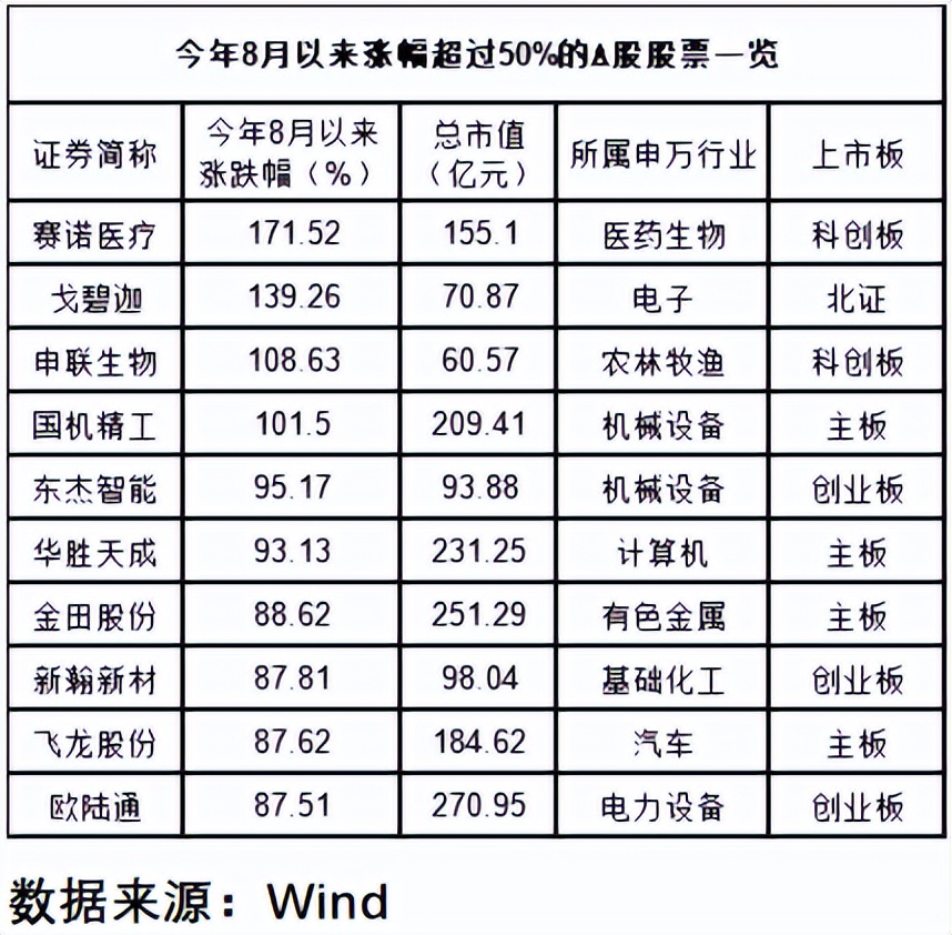 数据显示,虽然70多只个股涨幅超50%,但相比7月的80多只反而减少了。这说明什么?资金开始分散了。更让我惊讶的是,涨幅靠前的股票中,39只市值低于100亿,500亿以上的只有3只。这完全颠覆了我对"大市值更安全"的认知。