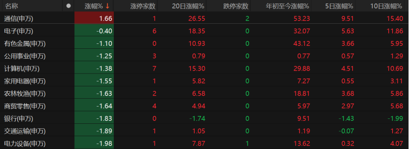 那天市场的表现确实耐人寻味。通信板块成为31个申万一级行业中唯一上涨的板块,涨幅1.66%,而房地产板块跌幅超过3%。光通信、AI芯片等科技概念相对抗跌,盲盒经济、减肥药等概念则遭遇大幅回调。