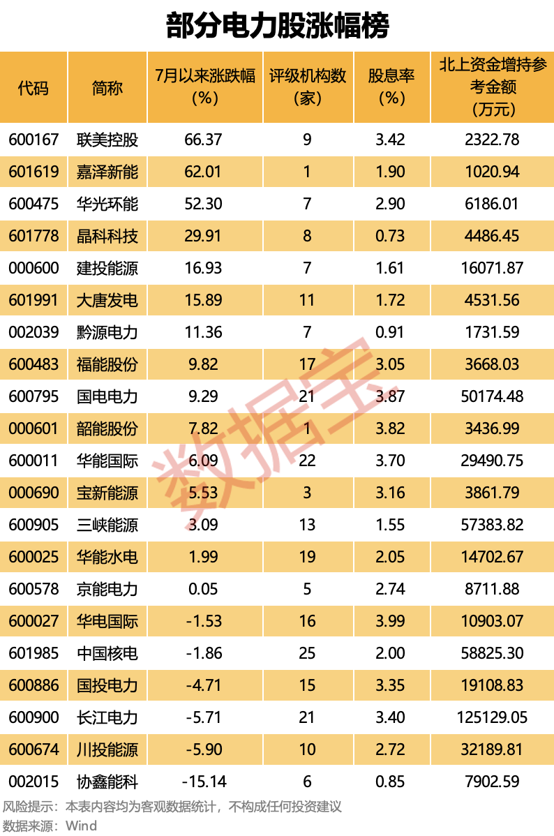 更值得注意的是北向资金的动向。二季度北向资金对电力板块的关注度明显提升,粗略计算增持超35亿元。长江电力获增持12.51亿元,外资持仓达15.14亿股;中国核电获加仓5.88亿元;三峡能源、国电电力等4家公司获增持均超2亿元。