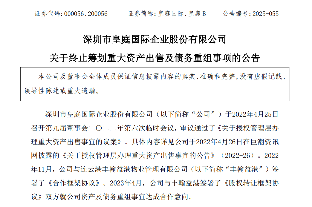 2025年核心资产深圳皇庭广场遭处置