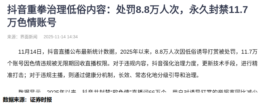 最近抖音直播重拳整治违规内容的消息刷屏了。超20万账号受罚,严打低俗与未成年人牟利行为。看着这些数据,我不禁想到咱们A股市场——这里何尝不是充斥着各种"违规操作"?只不过股市里的"违规者"更隐蔽、更专业。