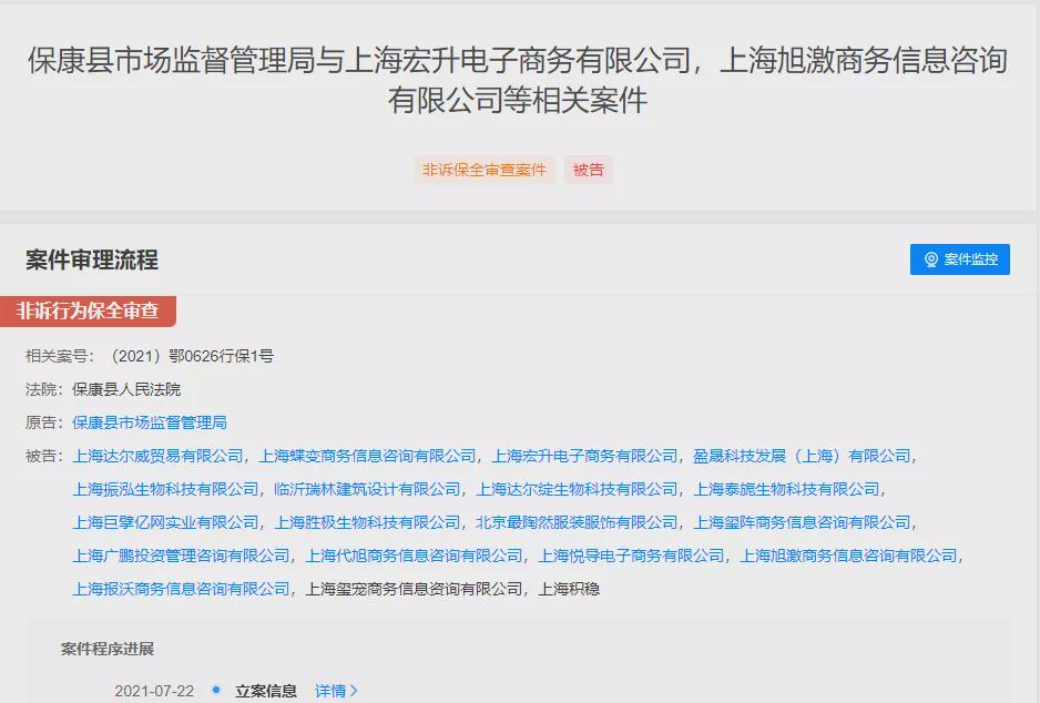 有业内人士表示,上述案件中达尔威及其关联公司被保康县市场监督管理局申请了“非诉财产保全”,也是因为相关微商品牌存在“涉嫌传销”的问题。