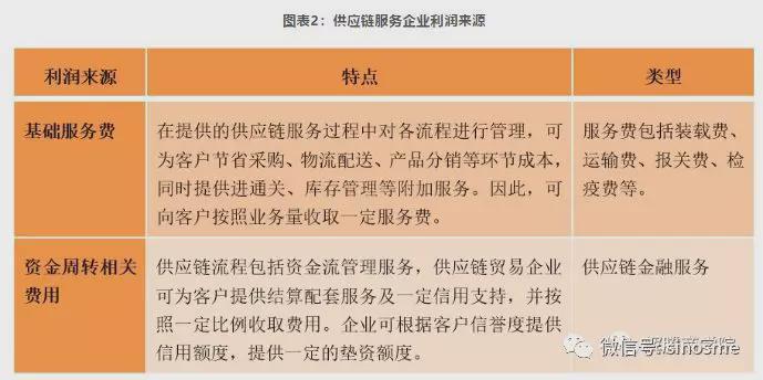 另一方面,供应链流程包括资金流管理服务,供应链贸易企业可为客户提供结算配套服务及一定信用支持,并按照一定比例收取费用,即供应链金融服务。