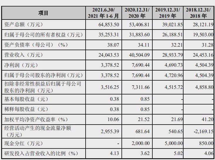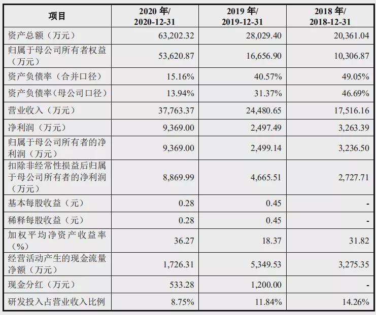 根据招股书披露财务状况,北路智控的业绩也在稳步上涨。2018-2020年,公司的营业收入分别为2.06亿元、2.96亿元和4.36亿元,同期归母净利润分别为3716.43万元、6629.96万元和1.10亿元。