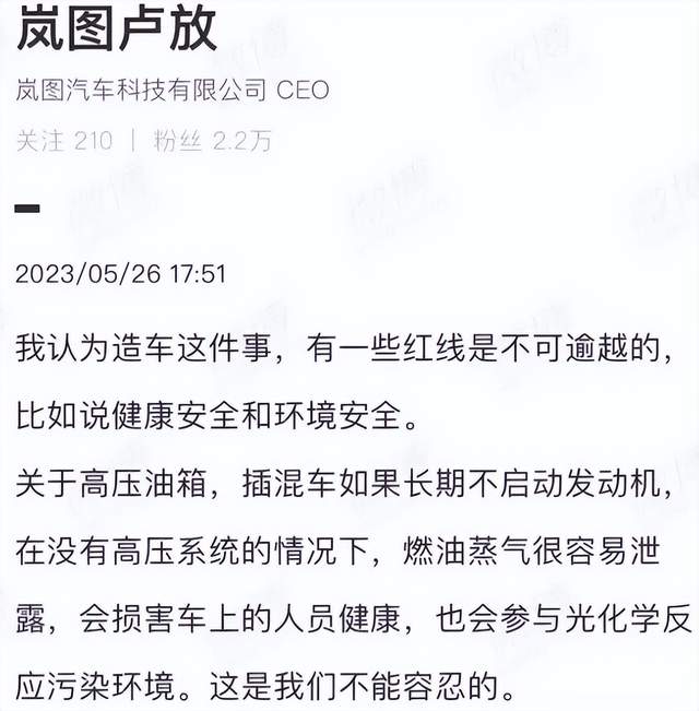 注意!理想汽车、岚图、零跑等国产造车新势力们,目前似乎都不约而同地更认可“高压油箱”,以在全工况下满足“国六B”排放标准。注意,“全工况”这个用词。