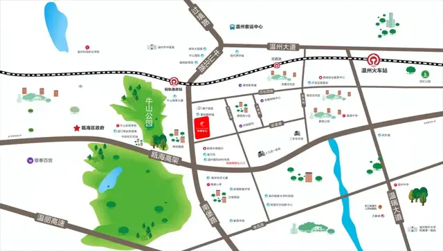 3) 道路:直达瓯海高架出入口,贯通温州的东、西片区,串联了瓯海、鹿城、龙湾核芯区域。