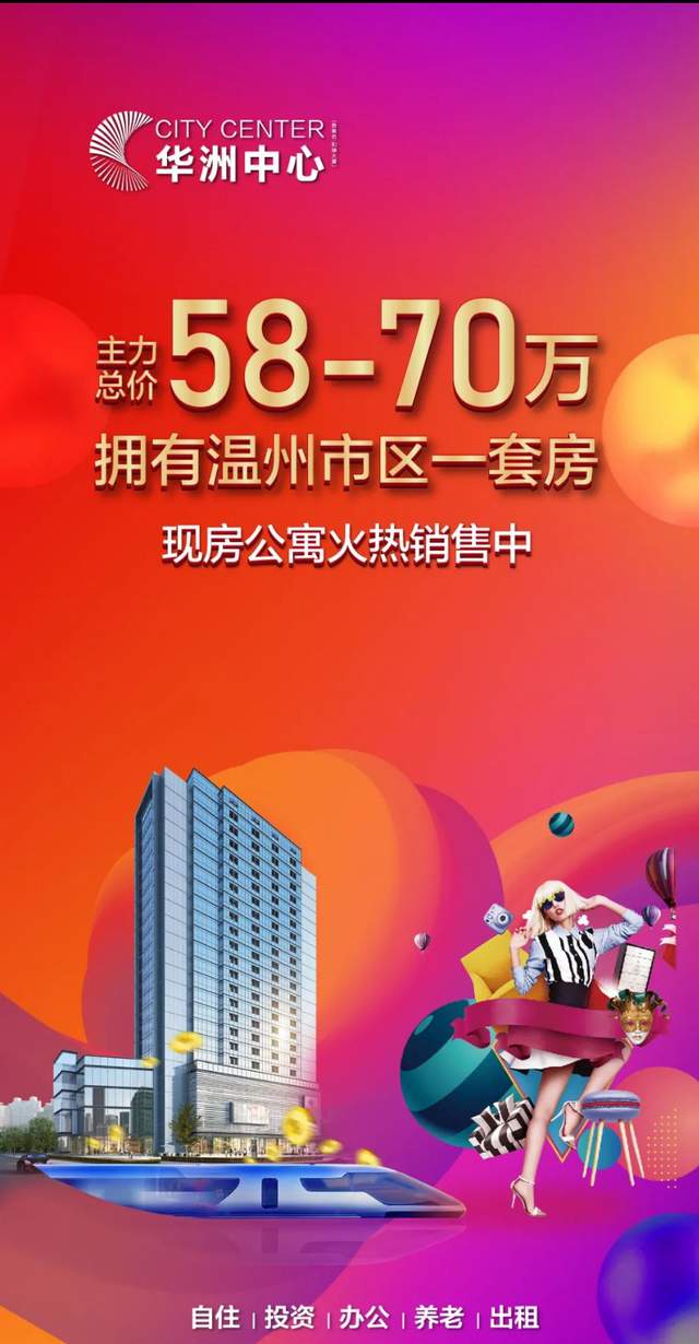 温州中心城区的在售公寓产品市面上是较为稀缺,更别说现房公寓,无论用作什么用途,总价约58-70万温州市区现房公寓,办公、自住或是投资都是相当不错的选择,加之投资成本低、风险小、便于管理等特点,作为资产配置也是一种不错的选择。