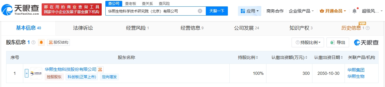 该公司成立于2021年11月,法定代表人为孙京军,注册资本300万人民币,经营范围包括工程和技术研究和试验发展、经济贸易咨询、经济信息咨询服务等。股东信息显示,该公司由华熙生物(688363)全资持股。