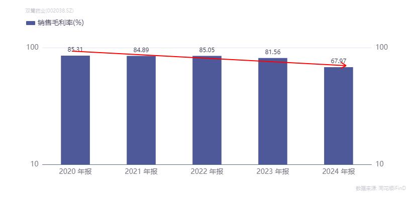 近年来,双鹭药业的毛利率出现了大幅下滑。2020年,双鹭药业的毛利率达85.31%,此后一路下滑,至2024年,已下滑至67.97%。