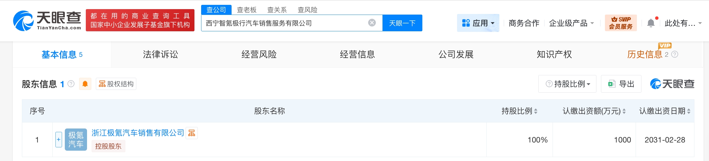 极氪汽车在西宁成立销售服务公司 注册资本1000万