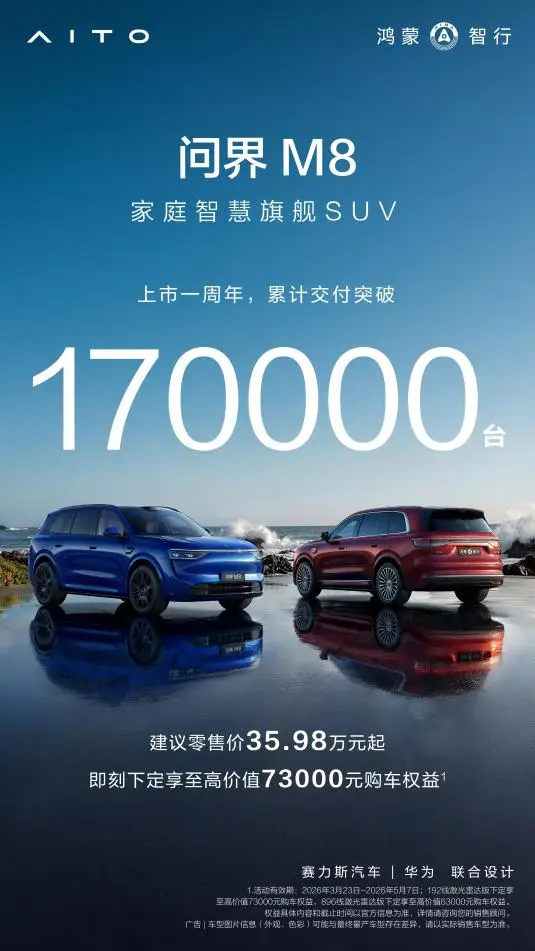 问界M8自上市以来,持续深耕家庭高端智能出行领域。基于消费者对“豪华”的认知和选择标准的深刻洞察,它跳出传统豪华的标签化桎梏,将锚点转向全场景价值体验,为用户提供了使用场景更丰富、实际体验更可靠的“新豪华”选择。上市一年累计交付突破17万辆,稳居“40万级销量标杆”。这一亮眼成绩,不仅标志着问界M8交付迈上规模化新台阶,更凸显了用户对问界“新豪华”理念的深度认同。