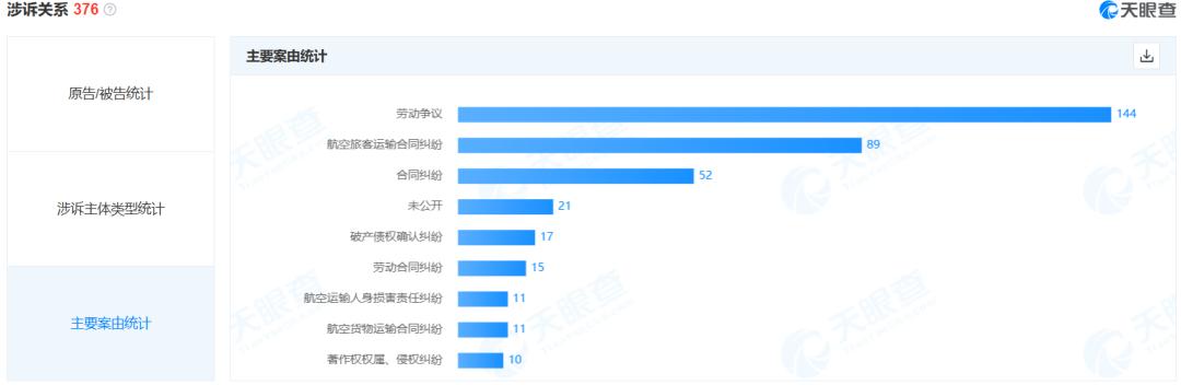 据天眼查信息,截至4月25日,海航控股累计有涉诉关系376条,其中涉及航空旅客运输合同纠纷的有89条。