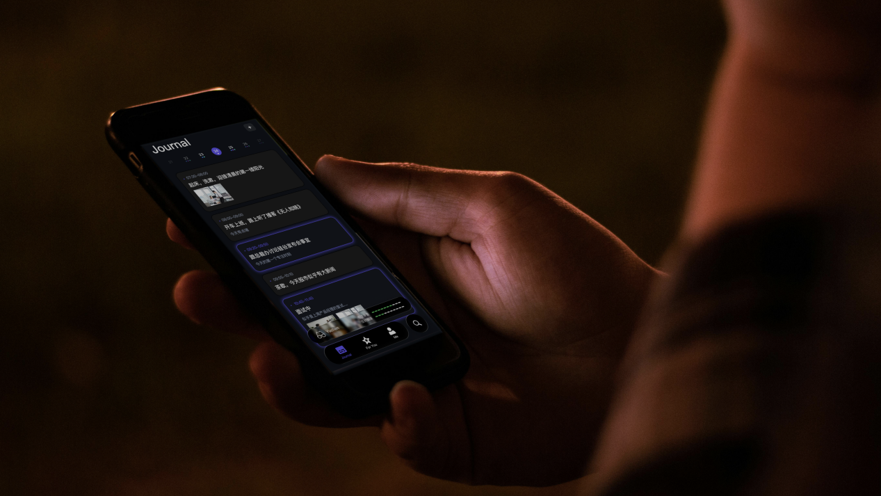 配套的 Moonix App 为用户打造了集生产力工具与个人数字记忆于一体的专属智能平台。区别于传统硬件 App 单一的 “文件管理” 模式,Moonix App 以时间轴为核心架构,直观聚合用户学习、工作、出行、生活全维度行为数据。