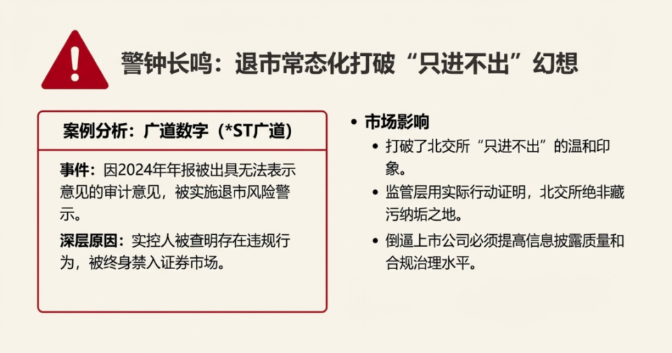 在牛市的喧嚣中,不可忽视的是市场的残酷淘汰机制。2025年,北交所的优胜劣汰功能得到了前所未有的强化。