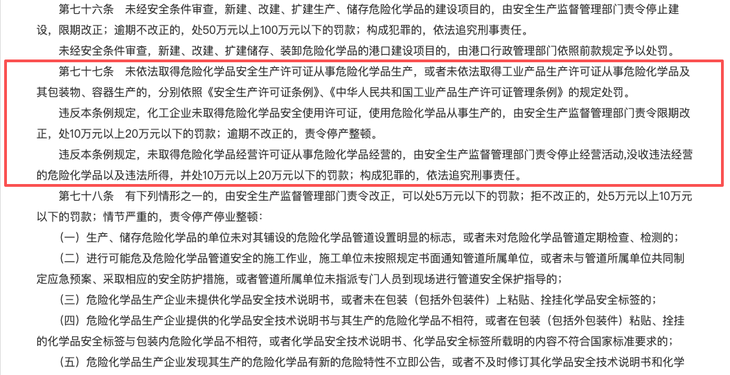 危险化学品无证经营与监控化学品违规先产可能涉嫌合规体系造假及隐瞒底线