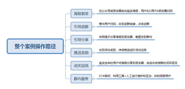 设计一张裂变海报;准备好推送的文案话术;群助手回复入群欢迎语+群活动+群规则;提前准备好群公告;提前创建好打卡活动,设计好奖励机制。
