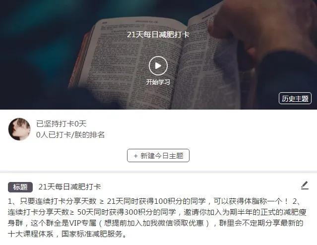 还是以本次减肥社群为例,为了拉新,我们就设计了让用户二次传播和转发的机制,配合相应的福利和会员权限等。
