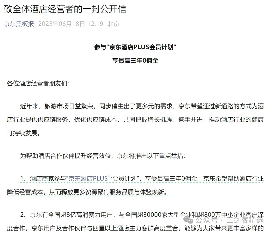 京东“三年0佣金”开了个好头,期待后续能针对“大数据杀熟”“二选一”顽疾开刀,好好整顿下酒旅行业,也打破携程一家独大、食酒旅而肥的态势。