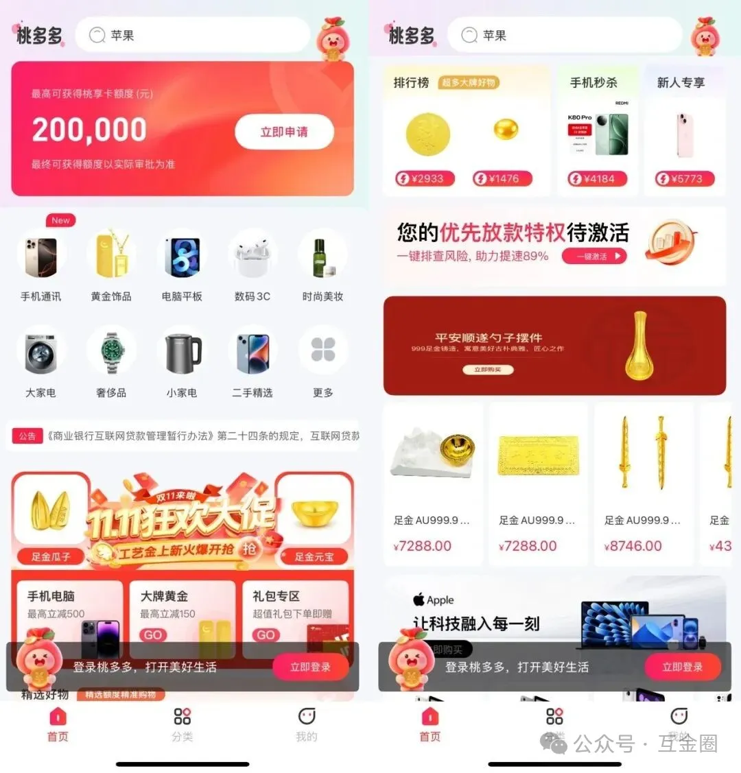 业内人士表示,「分期商城」在选品上,往往选择一些方便折现,且溢价很高的商品,例如3C(手机、电脑等)、黄金等。