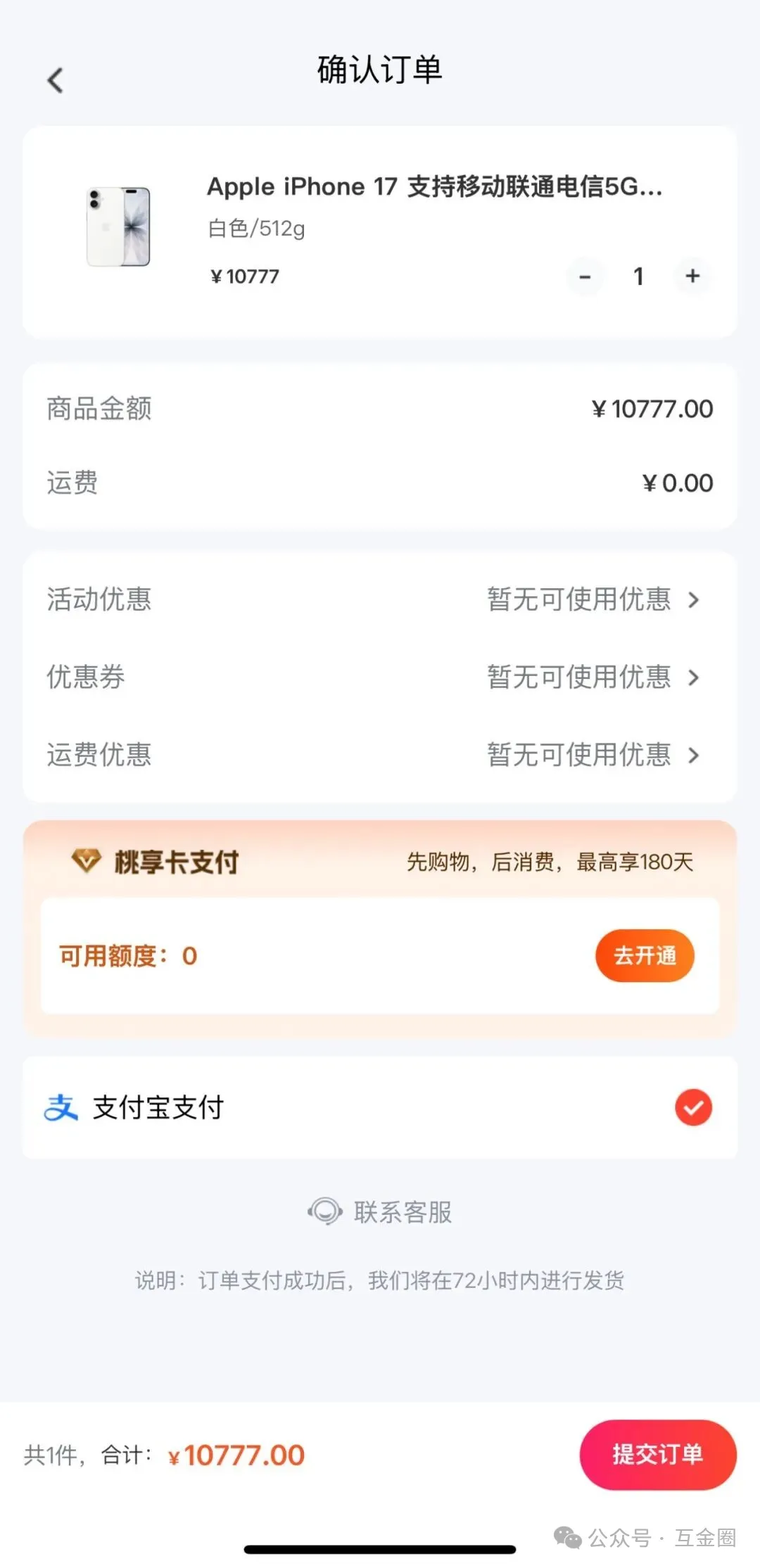 除了赚取商品溢价/差价外,在商品购买支付页面,用户可以选择开通「桃享卡」分期支付购买。在这一环节,平台还可以收取分期服务费。