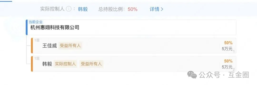 企查查显示,杭州惠翊科技有限公司成立于2024年4月,注册资本10万元,公司法人及实控人均为韩毅,该公司经营范围不包含金融,亦无金融业务相关资质。