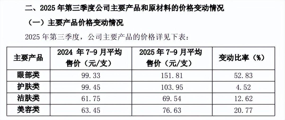 与此同时,公司四大类产品(眼部、护肤、洁肤、美容)的平均售价均实现同比上涨,其中眼部类产品均价涨幅高达52.83%。