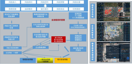 通过强大的数据采集系统和大数据处理系统可动态采集公共区域、企业设备信息、车辆位置信息、物流信息、重大危险源监控预警等数据,构建即时预警、每日动态监管、应急辅助决策等模型,为园区管理决策提供及时、准确、科学的信息。