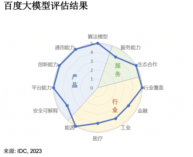 IDC评估结果显示,百度文心大模型在行业覆盖上获得唯一满分成绩,在能源、金融、教育、医疗等领域已经实现广泛业务布局和落地场景探索。