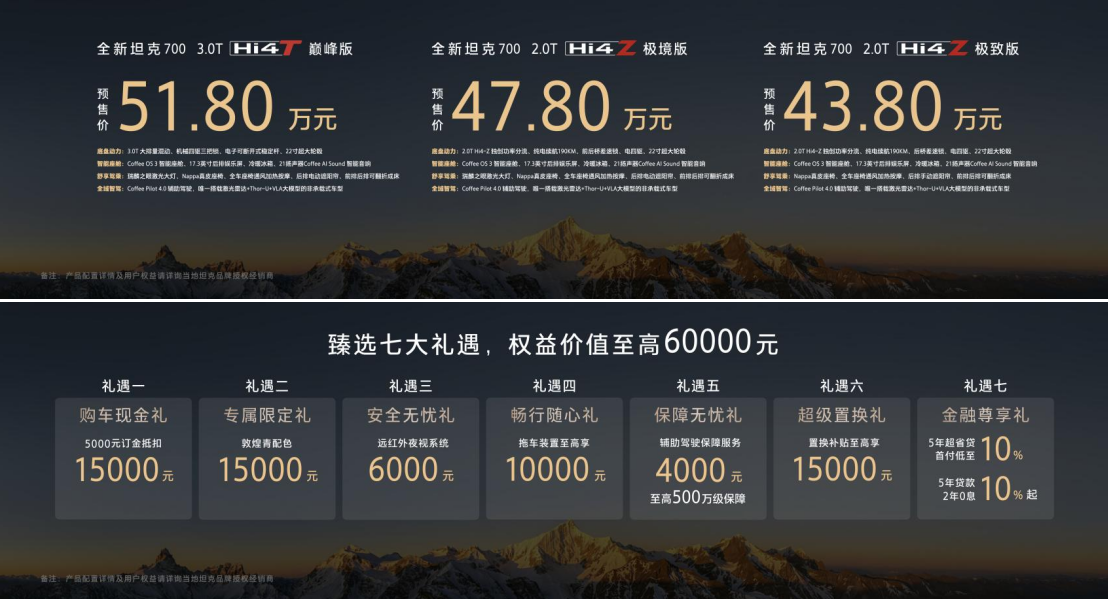 当一台预售价突破50万的中国品牌越野车亮相时,它卖的已不仅是产品,更是一种宣言。3月30日,坦克品牌全新旗舰坦克700正式开启预售,价格区间锁定在43.8万至51.8万元。这不仅是一个数字,更是中国品牌在硬派豪华越野市场立下的一座全新界碑。