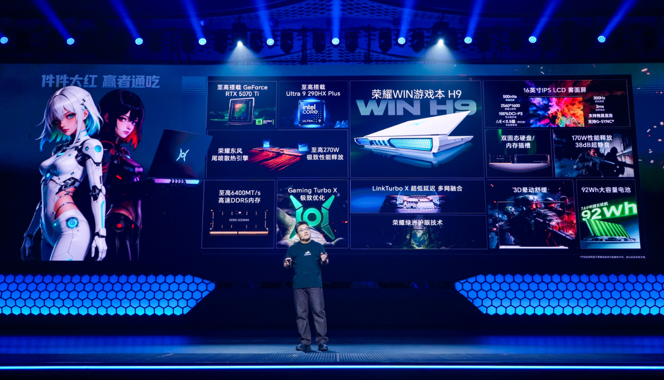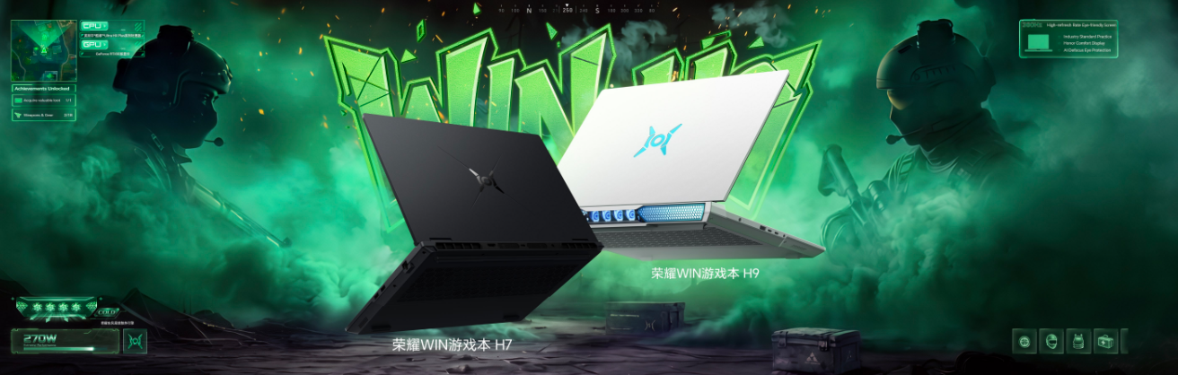荣耀WIN游戏本 H9搭载16英寸LCD雾面电竞显示屏,拥有500nits亮度与100%DCI-P3专业级色域。在游戏适配性上,屏幕刷新率达到行业第一梯队的300Hz,无论是FPS类射击游戏,还是其他竞技网游,都能带来更流畅、更跟手的视觉体验,杜绝画面拖影。