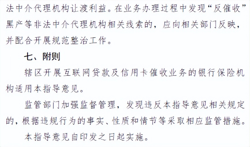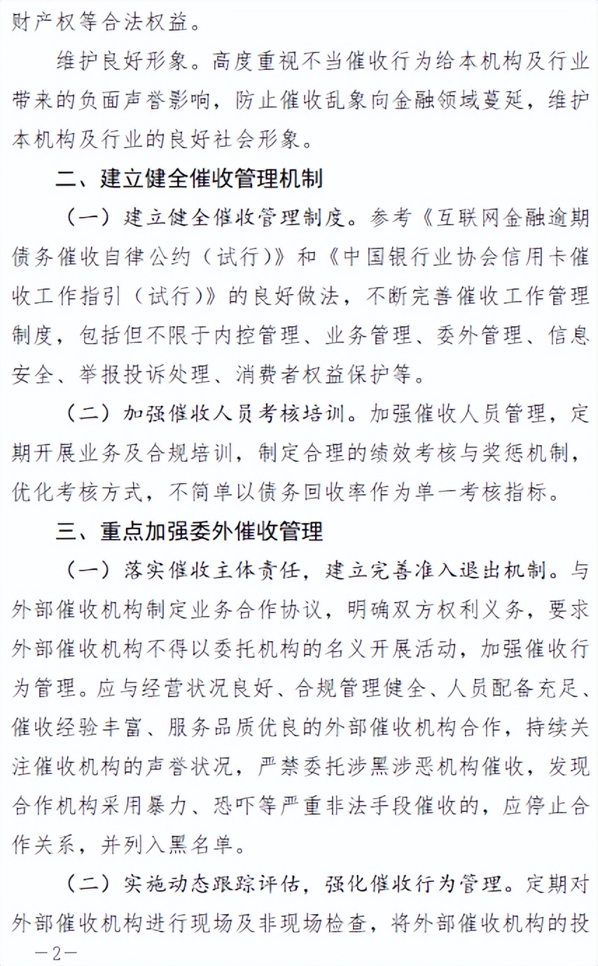 更为垂直和具体的则是2021年12月银行业协会下发的《关于印发中国银行业协会信用卡催收工作指引(试行)的通知》(下简称《信用卡催收指引》)和早在2018年3月中国互联网金融协会发布的《互联网金融逾期债务催收自律公约(试行)》。