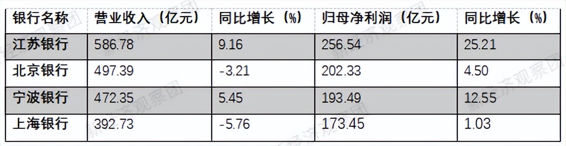 在资产规模增速方面,上述四家银行仅上海银行增速为个位数,其余三家增速均超过10%,其中北京银行资产总额同比增长15.34%;江苏银行总资产较上年末增长11.95%;宁波银行资产总额较年初增长12.85%。