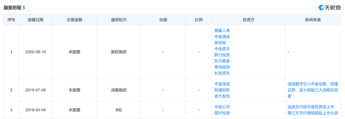 不仅如此,天眼查信息显示,自成立以来,连连数字还先后获得天使轮以及A、B、C、D共计五轮融资,其中最近的D轮融资达到10.9亿元,每股成本15.01元。公司完成第五轮融资后,市场估值已达150亿元。