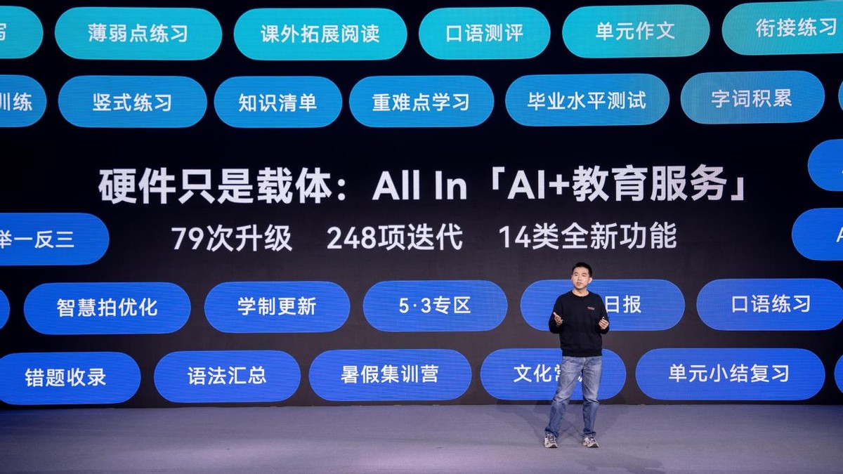 在王向东看来,“硬件只是载体,小猿学练机要做的是All in ‘AI+教育服务’。”小猿学练机将AI能力摆在与教育资源同等重要的位置。
