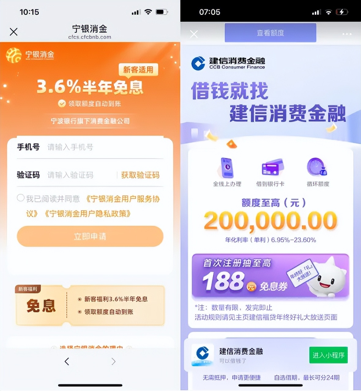 不过,需要指出的是,宁银消费金融与中原消费金融2家低至3.6%的贷款利率,均在小程序首页标明是面向新客户,而其他8家则未有类似的说明。