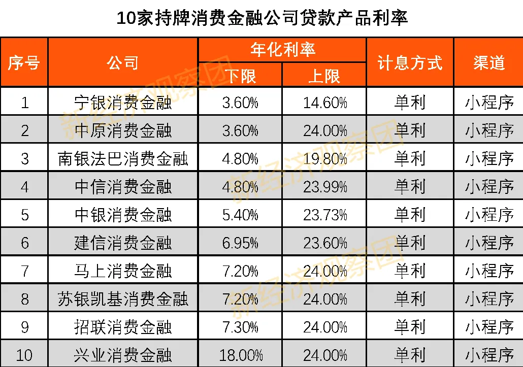 新经济观察团选取10家消金公司作为样本,发现消金公司年底营销呈现降息拓客趋势,最低利率下限已打入银行消费贷区间。