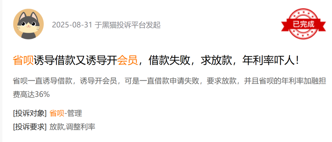 以拳头产品省呗为例,其运营主体为深圳无域科技技术有限公司,由林建明100%控股。目前仅黑猫投诉一个平台的投诉量就达到34596个,大量涉及利率超36%、暴力催收、隐私泄露、乱收费、擅自开通会员卡等问题。