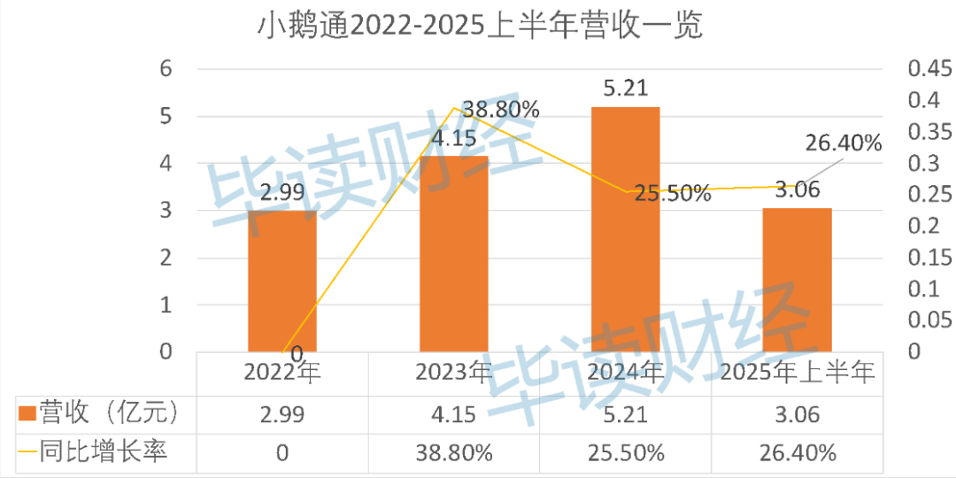 招股书数据显示,2022-2024年,小鹅通分别实现营收2.99亿元、4.15亿元和5.21亿元,年复合增长率超过30%,势头强劲。