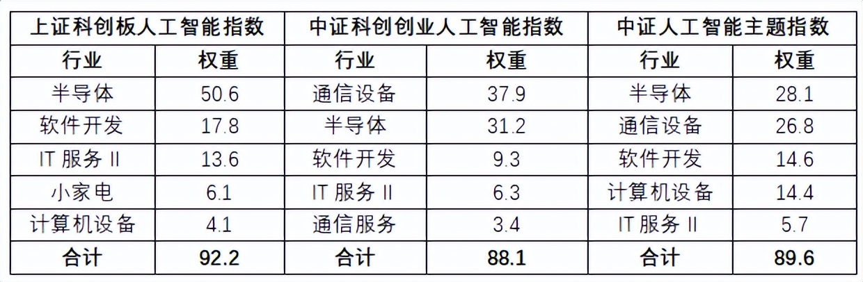 表1:三只人工智能相关指数前五大行业分布对比(申万二级)