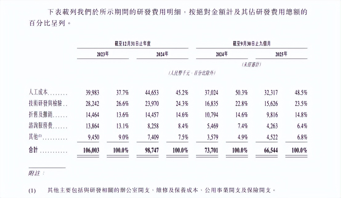 然而,财务数据揭示的现实却与招股书中所述存在明显落差。2023年、2024年及2025年前三季度,公司研发费用分别为1.06亿元、0.99亿元和0.67亿元,占同期营收的比例分别为0.61%、0.50%和0.44%,均不足1%,且呈逐年下降趋势。