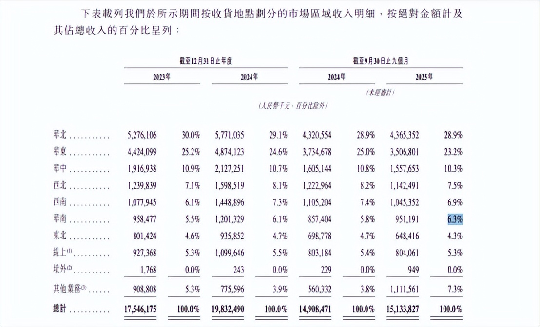 更关键的是,低温液奶市场本身正在加速分化。随着伊利“伊刻活泉”、蒙牛“每日鲜语”等全国性品牌加大投入,区域性乳企如光明、新希望也在巩固本土优势,君乐宝作为后来者,既缺乏南方奶源支撑,又面临冷链网络覆盖不足的短板。招股书显示,其在华南地区收入占比仅为6.3%,甚至低于西北的7.5%和西南的6.9%,反映出南向扩张面临瓶颈。