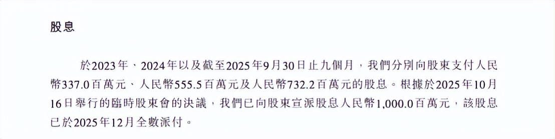 更引人关注的是,在如此高杠杆运营的背景下,君乐宝却持续实施大额分红政策。2023年、2024年及2025年前三季度,公司分别派发股息3.37亿元、5.56亿元和7.32亿元,三年累计分红达16.25亿元。而同期经调整净利润分别为6.03亿元、11.61亿元和9.45亿元,累计约27.09亿元。这意味着,公司将近60%的可分配利润悉数回馈股东,分红比例远高于行业常规水平。尤其在2023年净利润仅558万元的微利状态下仍派息超3亿元,在现金流本就承压的情况下,分红行为实质上加剧了对外部资本市场的依赖。