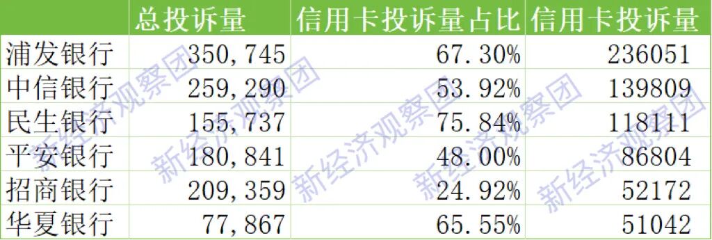 信用卡消保客诉:浦发银行投诉量最大 民生银行投诉占比最高