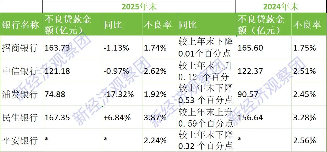 2025 年,股份行普遍加大信用卡风险管控力度,收紧授信、强化催收、优化客群、压降高风险资产,致力于信用卡资产质量改善,但各机构资产质量分化明显。