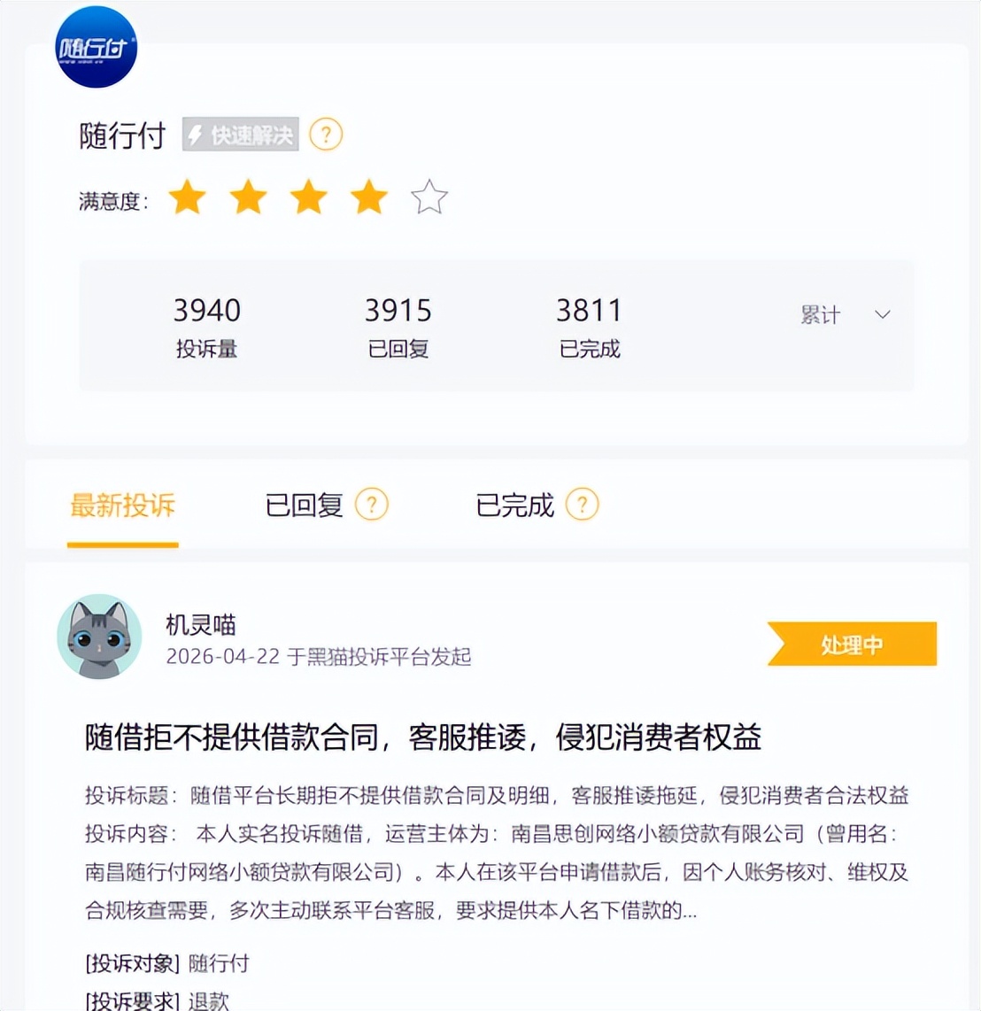 例如,随行付被投诉“随借”平台提供借款合同,客服推诿。去年12月,随行付关联的南昌思创网络小额贷款有限公司(原“南昌随行付网络小额贷款有限公司”)因违反信用信息采集等相关管理规定,被处以罚款41万元。该小贷公司实控人薛光宇为随行付副总经理。