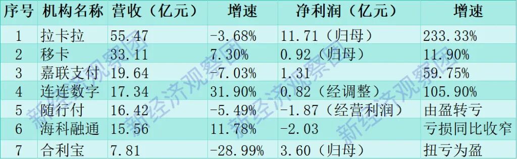 分化加剧:拉卡拉营收最高,连连数字增速居前