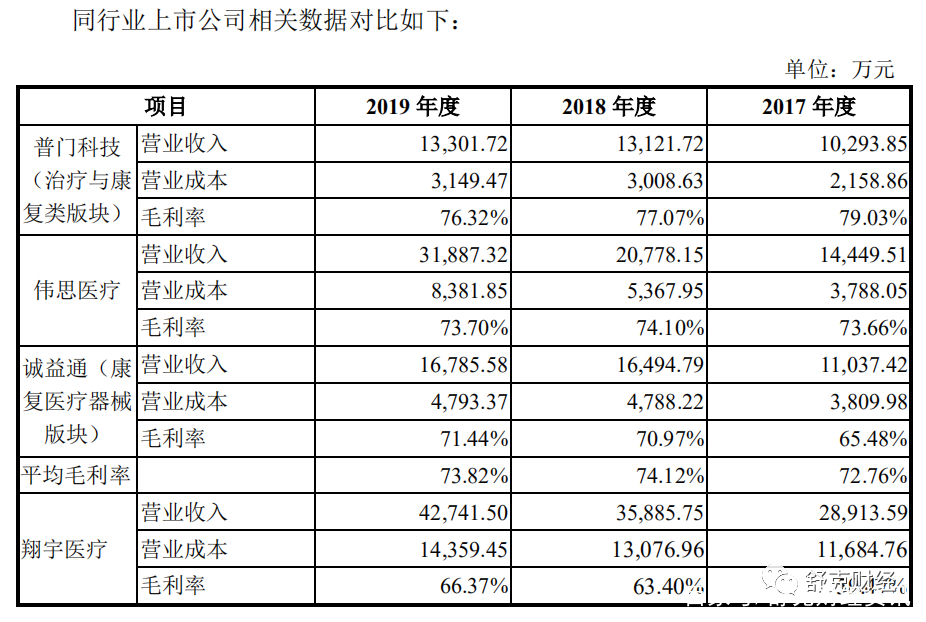 招股书显示,2017-2019年及2020年上半年,翔宇医疗毛利率分别为59.47%、63.40%、66.37%,低于行业65.45%、70.97%、71.44%平均毛利率。而毛利率低,则侧面反映出翔宇医疗在产品竞争力上相对不足,也体现了翔宇医疗盈利能力的相对薄弱。