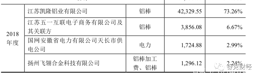 也就是说,2017年单向凯隆铝业采购铝棒高达七成,虽然近两年占比逐渐降低,却也将近一半。